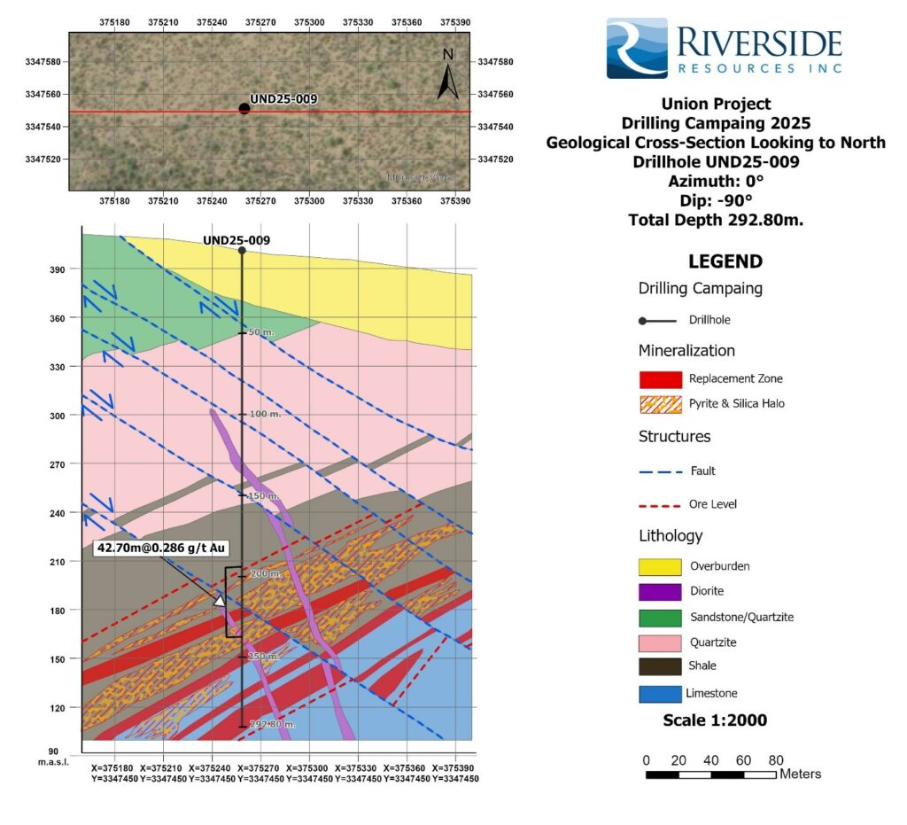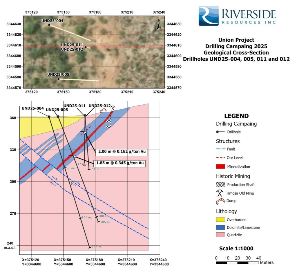 “Riverside is pleased to be working with Questcorp on the Union Project and these first 6 drill holes, representing half of the program so far is exciting and sets up for the next news release of the next 6 holes of the overall 12-hole program. Hole 9 into the Luis Hill exploration target is an exciting start finding a new western area that has scale and could be a great step for the program. Drilling at Famosa was positive for the structure and further drilling is warranted along strike north and south for over 1 km is wide open for discovery there and past assay results in earlier news releases of high-grade gold and past mining, make the Famosa area a priority as well. We are excited for a good 2026 and next exploration phase at Union.”