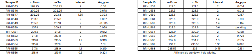 Table 2- Full Assay Interval for UND25-009 Discovery Intersection.