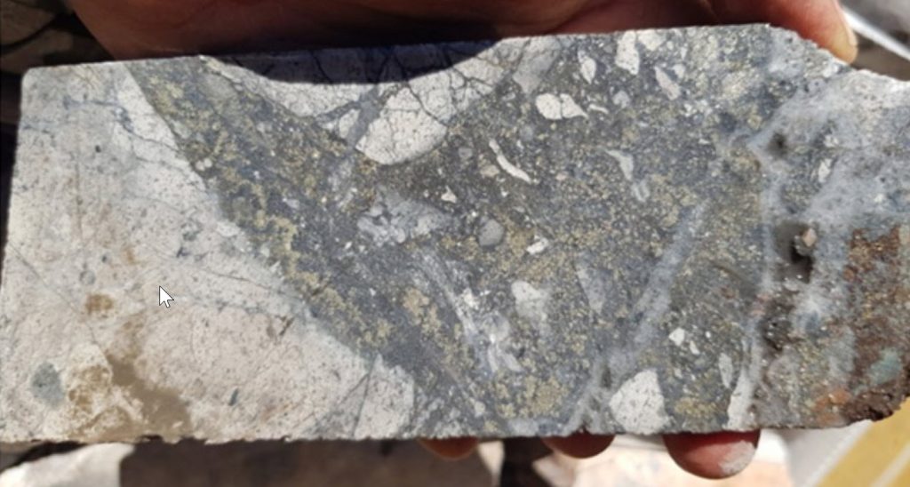 Hole AMDD19-010 intersected the San Pedro structure approximately 65 meters down dip of the intercept in hole AMDD18-009 (see Figure 1 below). Mineralization observed in both 009 and 010 is hosted within an epithermal breccia and quartz sulphide stockwork vein zone located on or near to the contact between overlying Tertiary rhyolitic ignimbrites and the footwall andesite volcaniclastics of the Late Cretaceous Tarahumara Formation. Diorite dykes appear to be emplaced along the fault zone and are associated with mineralization as depicted in Figure 1 below.