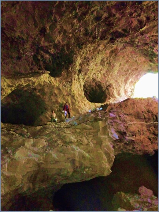 On the eastern side of the creek a number of small entrances, hardly visible, lead to an extensive network of anastomosing mining tunnels and cavities. The mining and excavation was done by hand with hammer, chisel and black powder explosives, leaving behind large underground cavities up to 50m x 50m x 30m high. Throughout the mines roman numerals painted on the walls record up to 58 mining areas. The mining excavations define a strike extension of over 500m and up to 100m wide. The host volcanic unit is at least 60m thick. The southern extension is abruptly cut by a fault which forms a large cliff face. To the north, east and west the host volcanic flows and silver mineralization is covered by the ignimbrites, but remains open to unknown extent in these directions. On the opposite western side of the creek exposures of the mineralized unit host good silver grades.