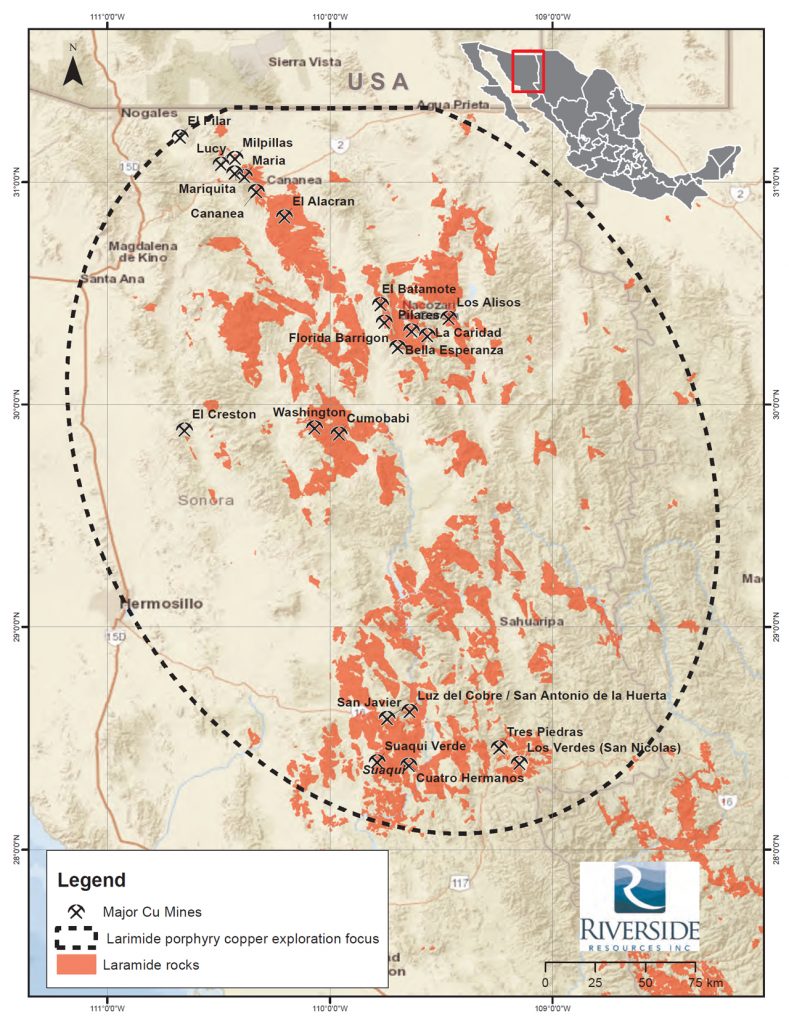 Riverside’s President and CEO, John-Mark Staude, stated: “We are delighted to combine the financing support of a major world copper leader with our in-country Mexico expertise to pursue exploration activities and advance promising projects. The two-year Program helps Riverside expand our copper exposure, while still conserving capital for our other self-funded initiatives.”
