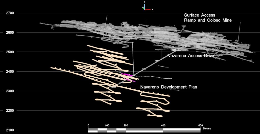 Figure 2 below shows a view looking southeast of the long-term development plans for the Nazareno mine.