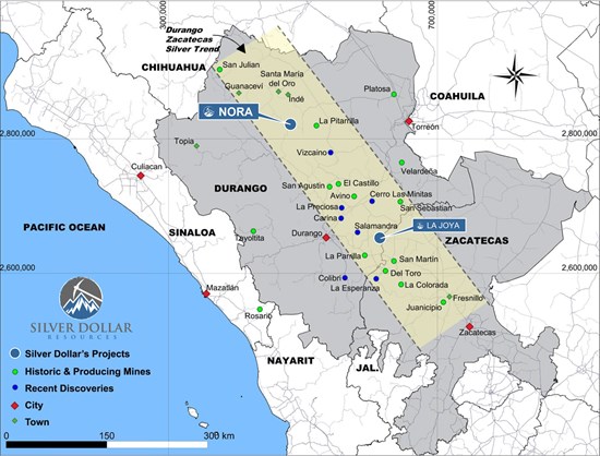 Silver Dollar is a mineral exploration company that completed its initial public offering in May 2020 and is fully funded for its 2023 exploration plans with approximately $5 million in the treasury. The Company’s primary projects lie within the prolific Durango-Zacatecas silver-gold belt and include the advanced exploration stage La Joya Silver Property and the recently discovered Nora Silver-Gold Property, both located in the state of Durango, Mexico. The Company has an aggressive growth strategy and is actively reviewing potential acquisitions with a focus on drill-ready projects in mining-friendly jurisdictions.