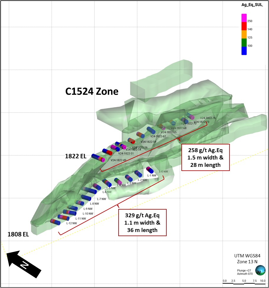 Greg McKenzie, President and CEO, commented: “The Quebradillas Mine continues to deliver high-grade silver results within immediate proximity to the existing underground development and services. Within the C1524 Zone, the mineralization appears to be strengthening at depth, exceeding grades and widths within the past two mining horizons.