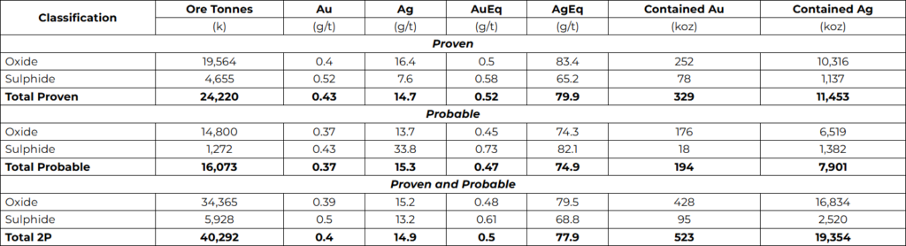 10. AgEq and AuEq were calculated at an Ag/Au ratio of 178:1 (oxide) and 120:1 (sulphide) for pit-constrained Mineral Resources.