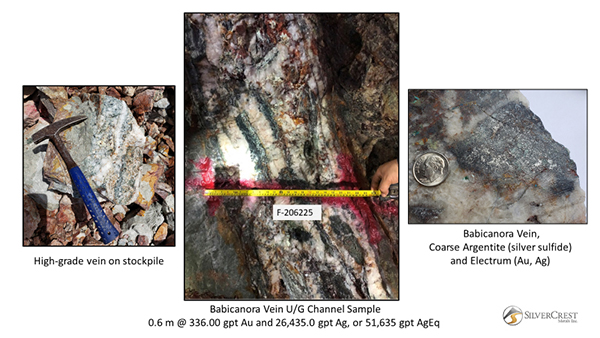 The underground intersection by the decline of the Babicanora Vein in the Area 51 zone has accelerated our understanding of the mineralization in this vein. The vein appears to have at least four phases of mineralization including: 1) Quartz Veining with coarse argentite (silver sulfide), electrum and pyrargyrite; 2) Quartz Breccia with lesser argentite; 3) Shear Zone with supergene enrichment including cerargyrite (silver oxide), clays, quartz vein fragments and calcite; and 4) adjacent Stockwork Quartz Veining, and calcite mineralization. The highest grades in the vein are found within Quartz Veining and Shear Zone mineralization. Noteworthy is the Shear Zone, which had low recovery in core drilling and may be part of the positive discrepancy reflected in higher grades from the initial U/G sampling results. Further work is required to determine the impact of Shear Zone on the overall grade of the Babicanora Vein. The Company intends to re-drill select known low core recovery areas with triple tube drilling to increase core recovery of clay-rich mineralization and help determine impact on grade estimation in the Babicanora Vein.