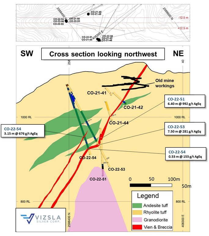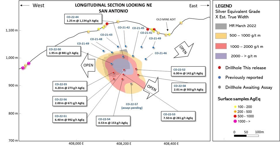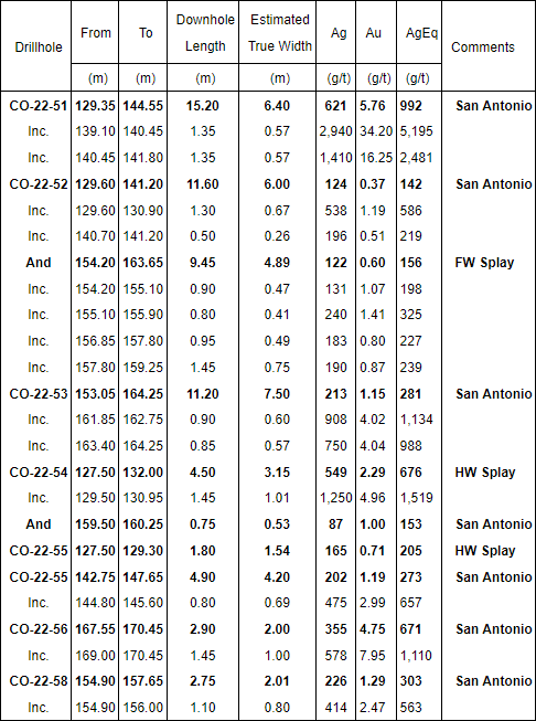 - CO-22-51 returned 992 g/t AgEq over 6.40 mTW (621 g/t silver and 5.76 g/t gold)