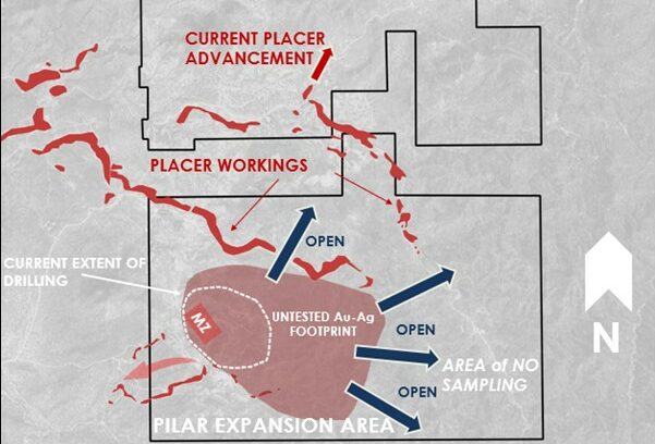 “The exploration drilling results today round out our first phase of 2024 drilling, showcasing the continued extension of near-surface resources to the southeast” commented Brodie Sutherland, CEO. “The North Hill and Main Zone Trends now extend over 900-meters defined by drilling, while the 4-T Trend extends over 700-meters. All trends remain open to the southeast and northwest and the recent surface sampling highlights a broader footprint expanding to the east. Surface work is ongoing to further define and delineate key target areas across the expansion area. As we continue to work and prepare for the next phase of drilling which will include core and RC, a major producer continues to show very strong interest and remains active in the district. We know they are looking for resource potential that exceeds two million ounces of gold, their continued interest in the area confirms they see the same multi-million-ounce potential that we do. The remainder of the year will focus on resource definition drilling, target generation for expansion and permitting for pilot scale mining at Pilar.”