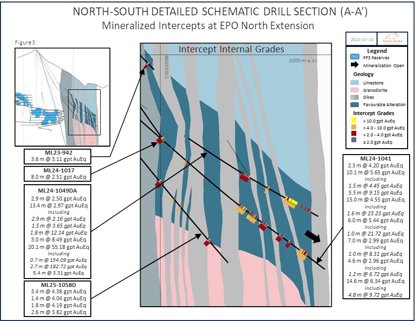 Toronto, Ontario–(Newsfile Corp. – July 16, 2025) – Torex Gold Resources Inc. (the “Company” or “Torex”) (TSX: TXG) announces assay results from the Company’s ongoing drilling program in the northern extension of EPO. The results to date support the Company’s goal of expanding resources to the north of the EPO deposit, which, in conjunction with drilling within the ELG and Media Luna clusters, is aimed at enhancing and extending the current production profile of the Morelos Complex beyond 2035. Results contained in this news release include notable highlights from drilling at EPO that were included in the year-end 2024 mineral reserve and resource update, as well as drilling results from this year’s program through May 15, 2025.
