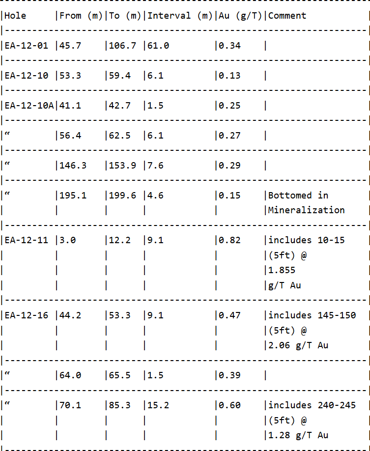 Note: The above results are based on drill cutting samples that were submitted to ALS Minerals in Hermosillo for preparation. Sample analysis was done at ALS Minerals in North Vancouver, Canada for gold by the Fire Assay method on 30 gram subsamples with AAS finish. ALS is an independent ISO certified commercial laboratory. Quality control included monitoring results of certified reference standards, duplicates and blank samples submitted with the samples. Intervals are measured down the hole and may not represent true thickness.
