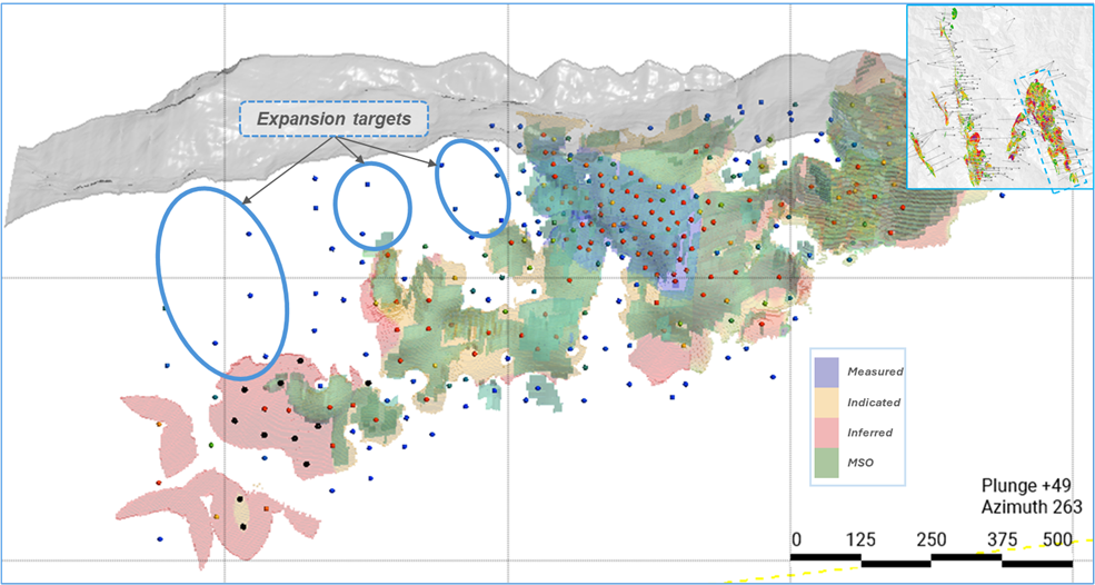 - La Luisa remains open at depth and along strike to the southeast and to the north in the 400-metre gap zone. Updated geologic modelling and observed metal ratios suggest two potential new feeder zones at depth that warrant future drill-testing.
