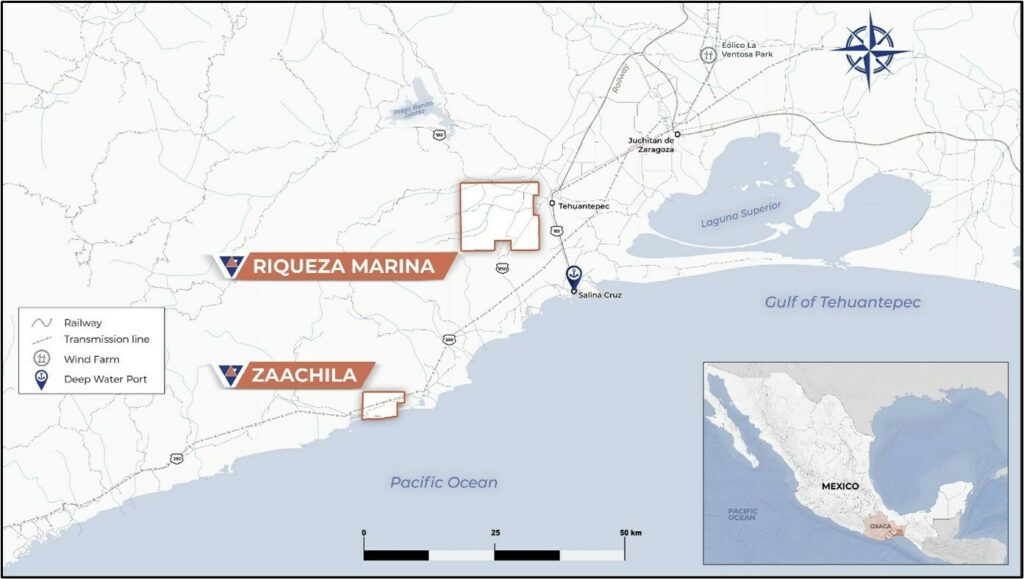 The Zaachila concession consists of 3,264 Hectares and is bounded on the south by the Pacific Ocean and is about 40 kilometers (km) southwest of Salina Cruz and 30 km southwest of Vortex’s Riqueza Marina project (Figure 1). Access to the project is excellent and is pierced by a paved two-lane highway. The project is located in the municipality of Santiago Astata where community leaders have consistently been supportive of exploration work. The project lies in the Zaachila ‘agency’ of the municipality, which remains the principal source for workers since early exploration activities.