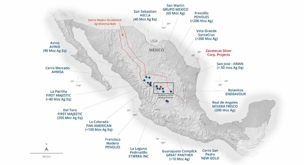 The Zacatecas silver property is located in Zacatecas state, Mexico, within the highly prospective Fresnillo silver belt, which has produced over 6.2 billion ounces of silver. The company holds 7,826 hectares (19,338 acres) of ground that is highly prospective for low-sulphidation and intermediate-sulphidation silver base metal mineralization and potentially low-sulphidation gold-dominant mineralization. On December 15, 2021, Zacatecas announced a mineral resource estimate at the Panuco deposit consisting of 2.7 million tonnes at 187 grams per tonne (g/t) silver equivalent (AgEq) (171 g/t silver (Ag) and 0.17 g/t gold (Au)) for 16.4 million ounces AgEq (15 million ounces silver and 15,000 ounces gold) (See news release dated December 14, 2021).